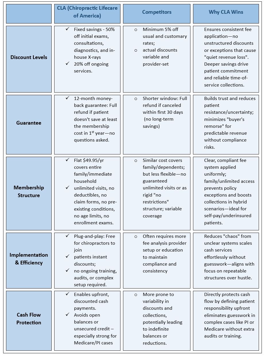 Join 4000 Chiropractors already using CLA in their practice for their Cash system.